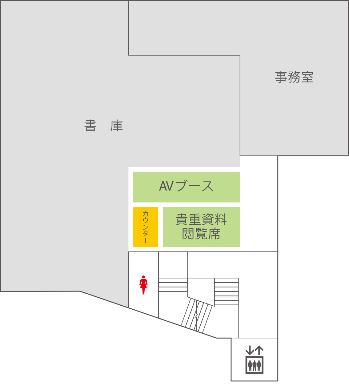 視聴覚資料(CD、DVD、ブルーレイディスクなど)を利用できるAVブース、貴重資料閲覧席、アーカイブ閲覧席、マイクロリーダーなどがあります。書庫、事務室も併設しています。