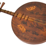 琵琶 (ビワ) わが国での琵琶に比べると、やや細長い感じ。 腹板 (ハライタ) は桐材、槽 (コウ) (背面) は針葉材で作られている。もっとも際立った特徴は、その柱 (ジ) であるが、水牛角、あるいは鼈甲で蒲鉾型に作ら…