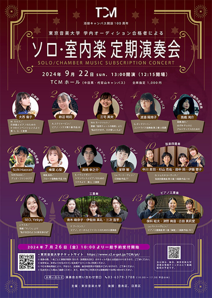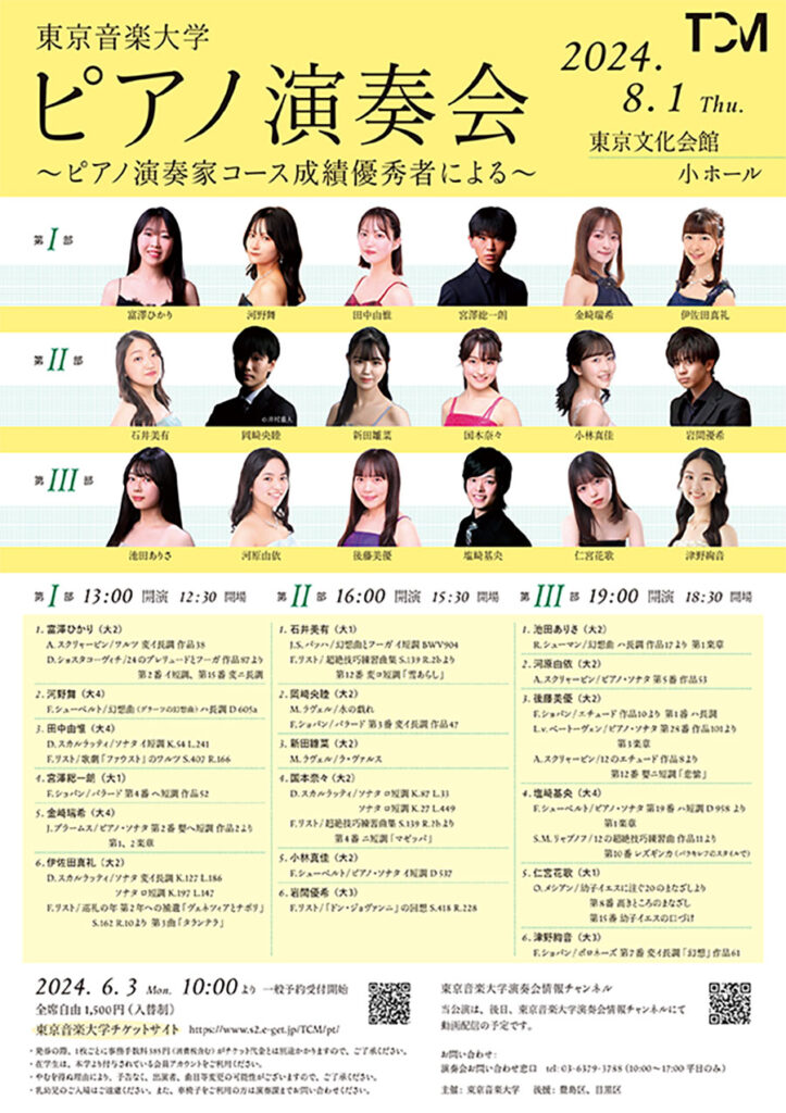 東京音楽大学主催および関連の演奏会プログラム一覧です。